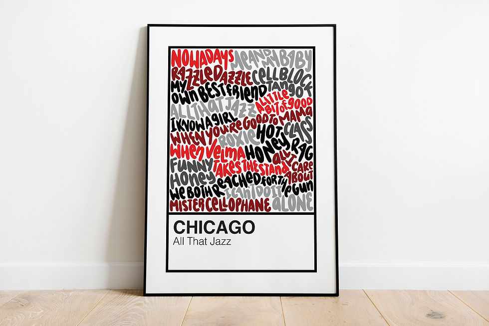 Chicago Broadway Musical Handlettered Color Swatch Art Print Poster